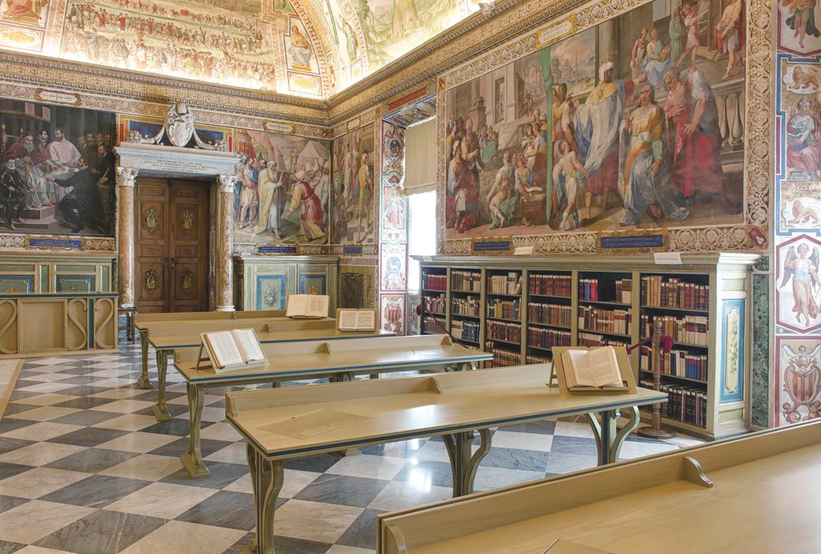 梵蒂冈是世界上国土面积最小的国家,梵蒂冈图书馆(Biblioteca Apostol-ica Vaticana)却是世界最重要的人文科学学术图书馆之一。梵蒂冈图书馆的前身为仅供教宗和教廷内部使用的私人藏书室。约在1450年,教皇尼古拉五世决定将其对外开放,并任命首位馆长。目前其藏品包括8万余种不同文字的写本,160万册纸质书籍(包括最早采用古登堡印刷术印行的“摇篮本”约8700部),此外还有硬币、版画、绘画、照片等。其中中文藏品约7000种,1911年之前刊印抄写的古籍有约2000种,是欧洲收藏中文古籍最多的图书馆之一。