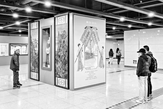 16号线国家图书馆站的展览吸引乘客驻足。