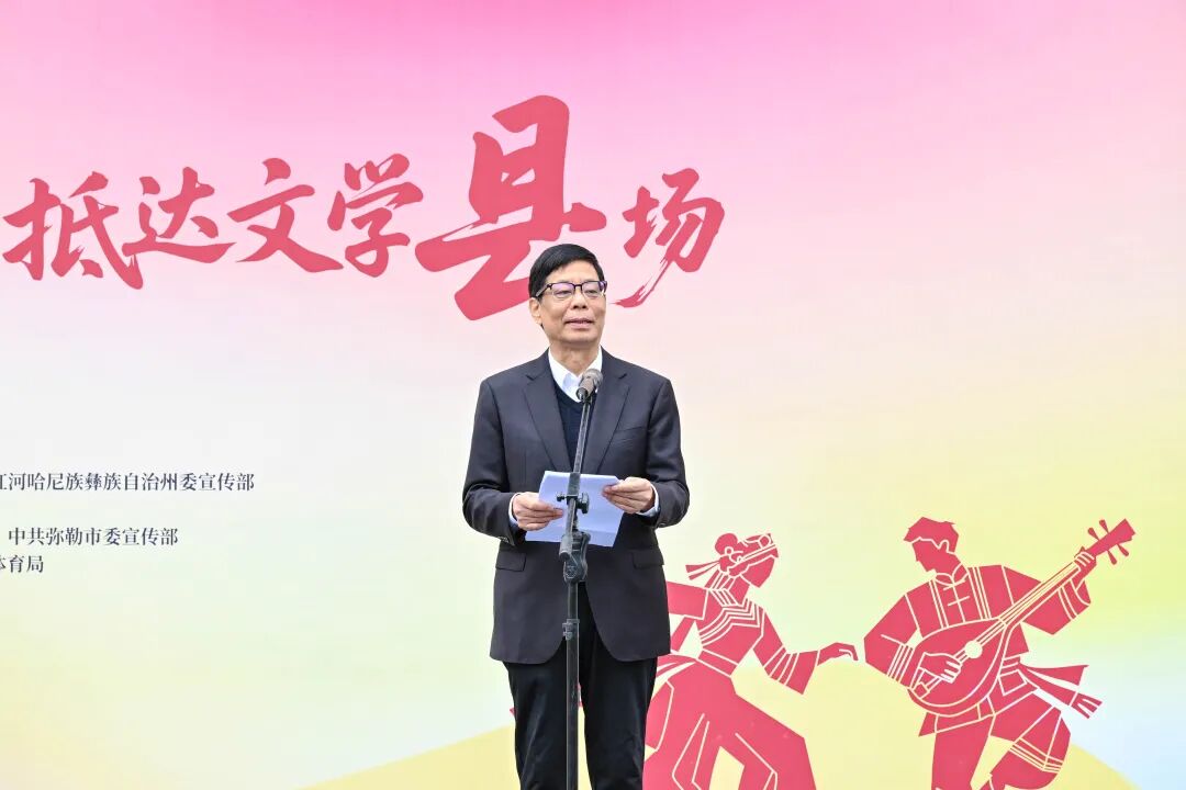 此次活动由中国作协主办,中国作协社联部、云南省文联、红河哈尼族彝族自治州州委宣传部、弥勒市委市政府承办。中国作协社联部主任包宏烈、副主任丰玉波,红河州委宣传部副部长李嘉龙,红河州文联党组书记、主席岳建青,弥勒市委常委、宣传部部长陈建伟,以及来自弥勒当地与附近区县的基层作家代表,机关、企事业单位干部群众代表,中小学生、广大文学爱好者参加活动。活动期间,作家们还走访了法依哨村“云南文学小镇”、可邑小镇等地,探讨“文学+”旅游发展模式如何进一步深化;观看当地村民表演的阿细跳月等民族乐舞表演,以其独特的文学视角发掘弥勒的人文之美与生态之韵,为这片土地注入文学力量。(王泓烨 周茉)