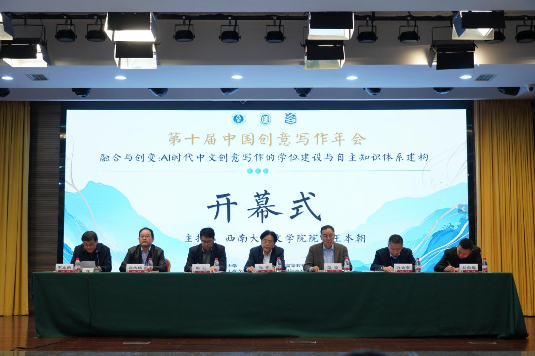 10月31日至11月2日,由西南大学、上海大学、高等教育出版社主办,西南大学文学院、上海大学中国创意写作研究院、高等教育出版社上海出版事业部、上海何建明文学研究院承办的第十届中国创意写作年会在重庆举行。会议以“融合与创变:AI时代中文创意写作的学位建设与自主知识体系构建”为主题,探讨中文创意写作的多元形态、发展路径与未来方向。来自全国各地100多所高等院校、研究机构的近400位文学与写作专业教师、研究生,以及作家、媒体出版人、中小学教师欢聚重庆,以线上线下相结合的方式,共同探讨AI时代下中文创意写作的学科建设与自主知识体系构建、数智化教学改革与创意写作新课程、新教材建设以及中文创意写作赋能中小学语文教育等议题。