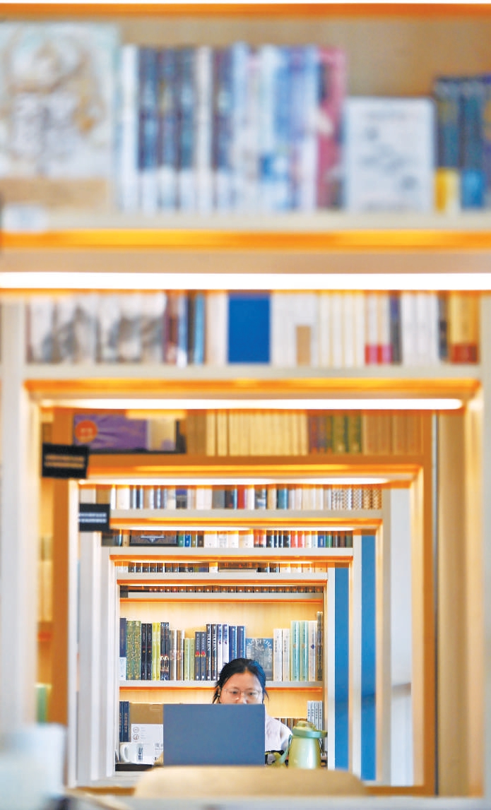 读者在联合书店·紫荆文化阅读馆里的书架间自习。北京日报记者 程功摄