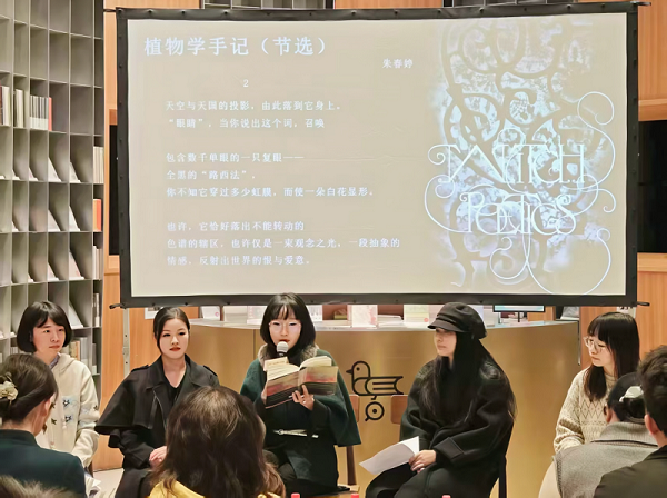 分享会分为诗人创作分享与朗诵、嘉宾讨论以及观众互动三个环节。首先由“城市漫游者”女性诗歌团体的朱春婷、陈铭璐、严天、屠丽洁、黄艺兰等五位成员,分别围绕新书的中都市经验、灵性直觉与生命意识等话题,结合诗歌创作实践进行阐释,并朗诵自己的代表性诗歌。