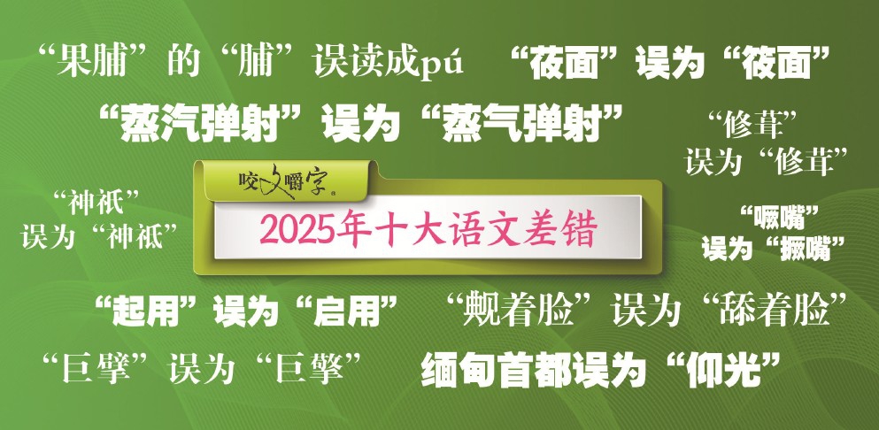 “果脯”的“脯”误读成pú、“神祇”的“祇”误为“祗”、“巨擘”误为“巨擎”、“起用”误为“启用”……昨天,上海《咬文嚼字》发布2025年十大语文差错,引发广泛关注。