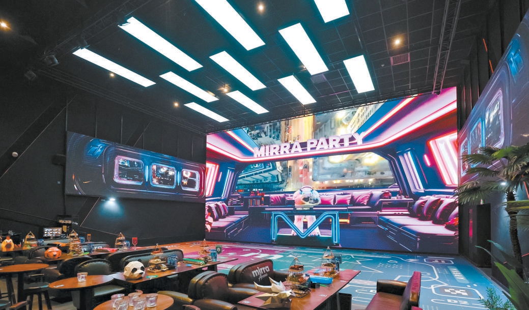 耀莱成龙影城五棵松店Mirra奇镜派对融合厅里,电影、游戏、演出、餐饮集于一体。