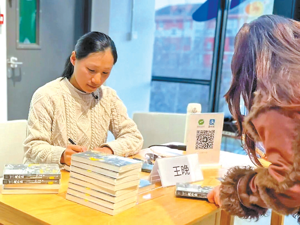 新书分享会上,王晚在签售新书《跑外卖》摄影/本报记者 计巍